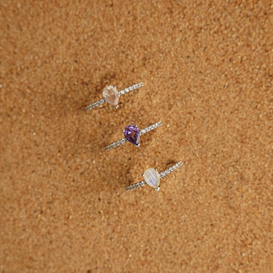 Sparkle Teardrop Ring - Moonstone